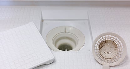 こまめに排水口を掃除していても、梅雨どきや暑い季節に下水のような臭いが立ち上ってくることがあります。排水トラップに溜まった汚れや髪の毛、せっけんカスが原因かも。詰まってしまう前に適切なクリーニングを。