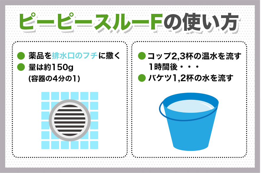 それでは、最強のパイプ用洗剤ピーピースルーの使い方について紹介していきます。